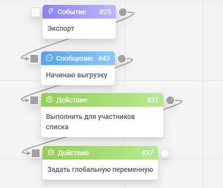- Событие "Входящее сообщение" с текстом "Экспорт" (или любое другое ключевое слово)