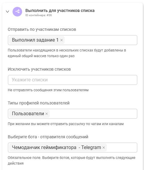 - Обязательно выбираем бота (тг/вк), иначе не сработает действие